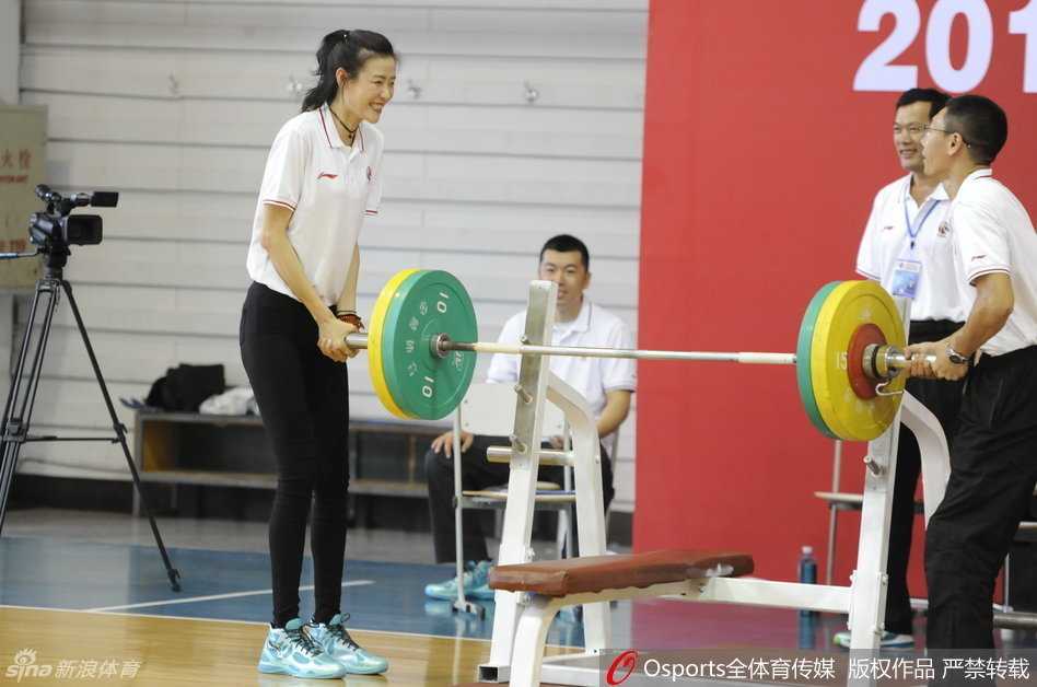 ▲ 杠铃的分量不轻,这位球员咬牙坚持,表情严肃,旁边的裁判也一丝不苟地注视着动作是否达标。