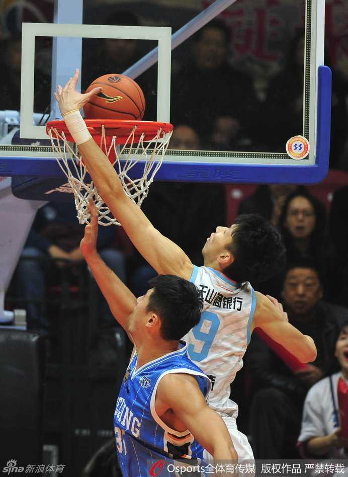 莫里斯高高跃起,在空中滑翔后将球狠狠砸进篮筐,这一记暴扣宣示着北京队内线不可侵犯的尊严。